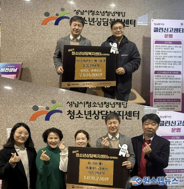 원스텝뉴스 이병희 기자 | 성남시청소년청년재단 성남시청소년상담복지센터는 12월 18일, 성남열린푸드뱅크마켓, 파리바게트 위례아트리버점과 물품 전달식을 진행했다고 밝혔다.