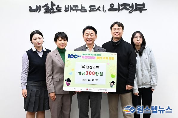 원스텝뉴스 이병희 기자 | 의정부시는 12월 18일 ㈜선진소방이 ‘100일간 사랑릴레이 배턴 잇기’에 동참해 지역 내 취약계층 지원을 위한 성금 300만 원을 기탁했다고 밝혔다.