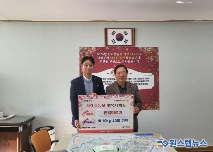 이봉재 대화동장은 “지역사회의 소외된 이웃을 위해 따뜻한 나눔을 실천해 주신 한일의료기에 감사하다”며 “소중한 쌀은 후원자의 뜻에 따라 도움이 필요한 가구에 신속하고 공정하게 전달해 모두가 따뜻한 연말을 맞이할 수 있도록 하겠다”고 전했다.