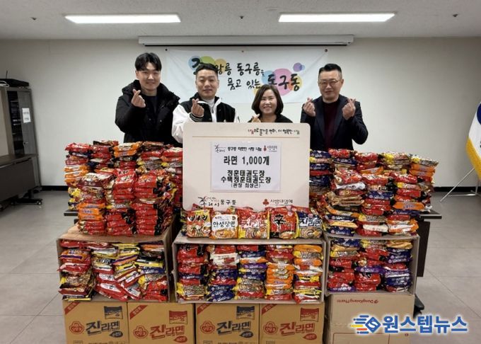 원스텝뉴스 이병희 기자 | 구리시 동구동은 지난 18일 동구동 행정복지센터에서 정훈태권도장으로부터 겨울철 어려운 이웃을 위한 라면 1,000개를 전달받았다고 밝혔다.