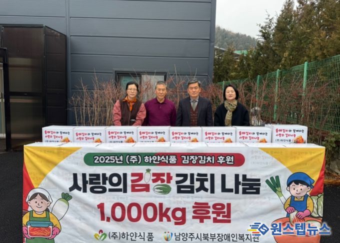 원스텝뉴스 이병희 기자 | 남양주시는 17일 남양주시북부장애인복지관에서 ㈜하얀식품(대표 장유라)의 후원으로 ‘사랑의 김장김치 전달식’을 개최하고, 지역 내 취약계층 장애인 가정에 김장김치 1,000kg을 개최했다고 밝혔다.