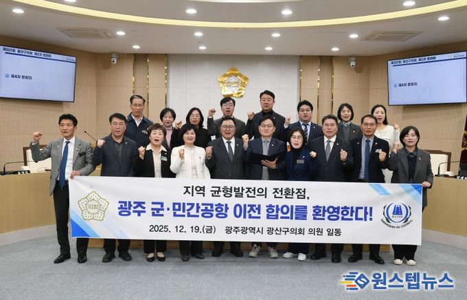 끝으로 광산구의회는 “정부와 광주시, 전남도, 무안군이 이번 합의를 토대로 군·민간공항 이전 사업을 성공적으로 마무리해 지역 발전과 주민 삶의 질 향상이라는 공동의 목표를 실현해 나가길 기대한다”고 밝혔다.