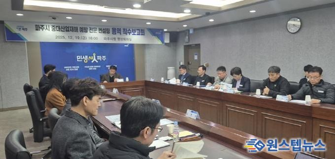 원스텝뉴스 이병희 기자 | 파주시는 지난 19일, 중대산업재해 예방 및 재발 방지 실행 체계를 마련하기 위한 '파주시 중대산업재해 예방 전문 컨설팅 용역' 착수보고회를 개최했다. 시는 이번 연구용역을 통해 파주시의 안전보건관리체계를 총체적으로 점검하고 재정립해 중대산업재해 예방에 총력을 기울여나간다는 계획이다.
