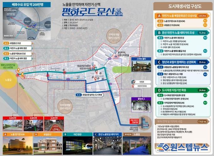 시는 문산천의 노을 경관과 수변을 따라 문산역과 디엠지(DMZ) 평화누리길로 이어지는 자전거길, 쉼터를 결합한 복합문화공간과 평화를 주제로 한 특화 거리를 조성하는 한편, 주민과 상인, 청년들의 협력을 기반으로 침체된 상권을 되살려 지속 가능한 도시재생 자립 기반을 다져나간다는 구상이다.
