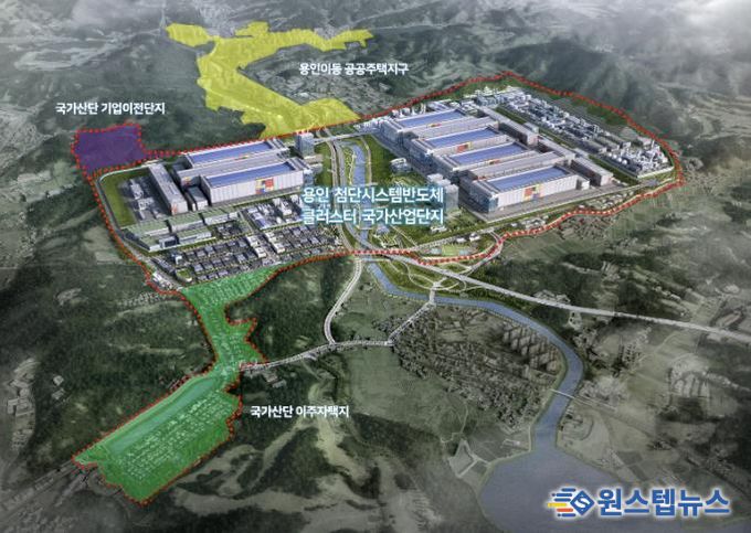 ‘용인 첨단시스템반도체 국가산업단지’는 이동읍·남사읍 일원 777만 3656㎡(약 235만 평) 부지에 삼성전자가 시스템반도체 생산설비(Fab) 6기를 건설하는 초대형 프로젝트다. 삼성전자는 이곳에 360조원을 투자할 계획이라고 밝혔지만 향후 생산설비 건설이 진행되면서 투자규모는 한층 더 커질 것이라는 전망이 나오고 있다. 이곳에는 80여 개 반도체 소재·부품·장비·설계 기업, 연구기관도 입주하게 된다.