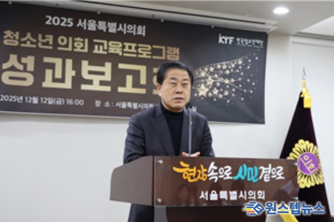 원스텝뉴스 이병희 기자 | 서울특별시의회 도시안전건설위원회 부위원장으로 활동하고 있는 김용호 의원(국민의힘, 용산1)은 12월 12일 서울시의회 별관 제2대회의실에서 열린 ‘청소년 의회 교육프로그램 성과보고회’에 참석해 축사를 전하며 청소년들의 의정 체험 성과를 격려했다.
