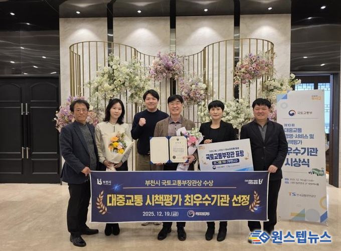 원스텝뉴스 이병희 기자 | 부천시는 지난 19일 국토교통부가 실시한 ‘2025년 전국 대중교통 시책 평가’에서 처음으로 최우수기관에 선정돼 국토교통부 장관 표창을 받았다.