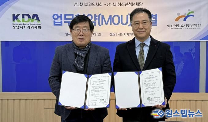 원스텝뉴스 이병희 기자 | 성남시청소년청년재단이 12월 19일 성남시치과의사회와 청소년의 건강한 성장과 구강건강 지원을 위한 업무협약을 체결했다고 밝혔다.