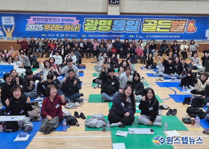 원스텝뉴스 이병희 기자 | 민주평화통일자문회의 광명시협의회는 지난 20일 광명하안북초등학교 다목적체육관에서 ‘2025. 우리는 하나!’를 슬로건으로 시민과 자문위원이 함께하는 ‘광명 통일골든벨’ 행사를 성황리에 개최했다.
