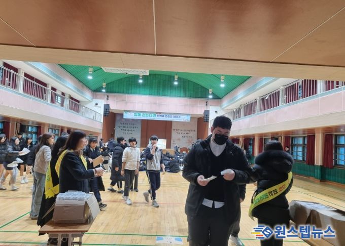 원스텝뉴스 이병희 기자 | 경기도연천교육지원청은 12월 19일, 전곡중학교에서 학생 약 550명을 대상으로 교육환경보호구역 제도 및 마약 예방 홍보 캠페인을 실시했다.