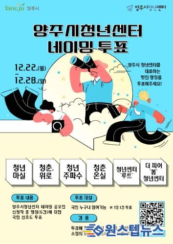 양주시 관계자는 “청년센터 이전과 확대를 계기로 청년과 시민 모두에게 친근하고 의미 있는 공간 이름이 선정될 수 있도록 많은 관심과 참여를 바란다”고 말했다.