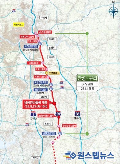 안성~용인~구리 구간(72.2㎞)은 1월 1일 개통됐다. 이 가운데 처인구 모현읍에서 원삼면까지 용인을 남북으로 관통하는 구간의 길이는 26㎞다. 포천~구리 구간(44.6㎞)은 지난 2017년 개통됐고, 안성~세종 구간(59.5㎞)은 2026년 말 개통 예정이다.