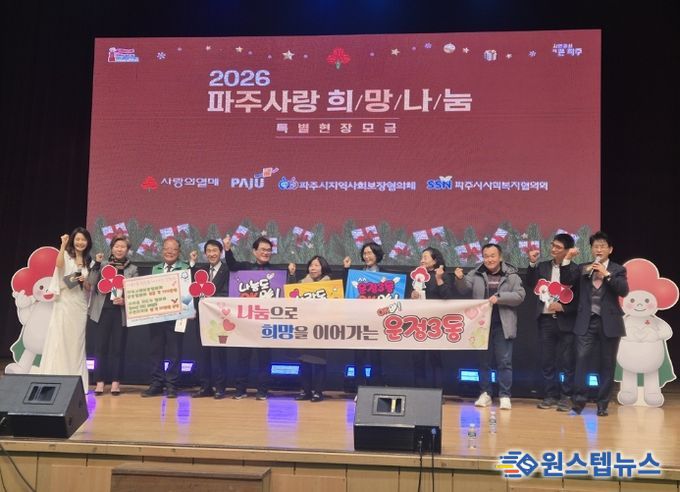 원스텝뉴스 이병희 기자 | 파주시 운정3동 주요 사회단체들은 지난 19일, 파주시민회관 대공연장에서 개최된 ‘2026 파주사랑 희망나눔 특별현장모금’에 참여해 성금과 물품을 전달하며 연말을 맞아 따뜻한 나눔을 실천했다.