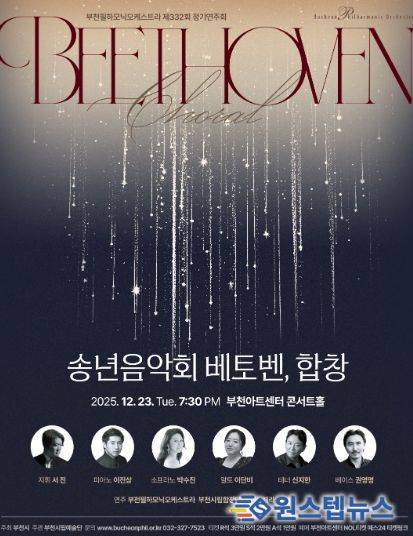 원스텝뉴스 천규영 기자 | 부천필하모닉오케스트라가 오는 12월 23일 오후 7시 30분 부천아트센터 콘서트홀에서 제332회 정기연주회 송년음악회 ‘베토벤, 합창’을 개최한다. 이번 송년음악회는 부천필이 2015년부터 매년 선보여온 프로그램인 베토벤 '교향곡 제9번 ‘합창’'과 함께, 모차르트 '피아노 협주곡 제12번'이 연주된다. 공연에는 지휘자 서진과 부천필이 무대에 오르며, 소프라노 박수진, 메조소프라노 이단비, 테너 신지한, 베이스 권영명이 협연하며 부천시립합창단과 노이오페라코러스가 연주로 함께 무대를 꾸민다.