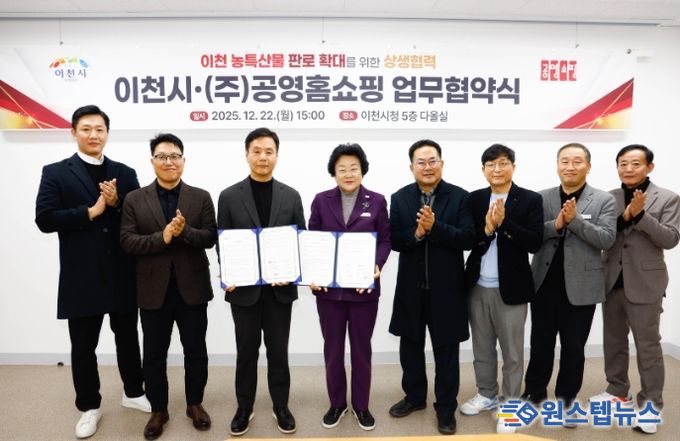 원스텝뉴스 이병희 기자 | 이천시는 12월 22일, 공영홈쇼핑과 이천시 농산물 판매 확대를 위한 업무협약(MOU)을 체결하고, 이천쌀을 비롯한 지역 농산물의 안정적인 판로 확대와 브랜드 가치 제고에 나선다고 밝혔다.