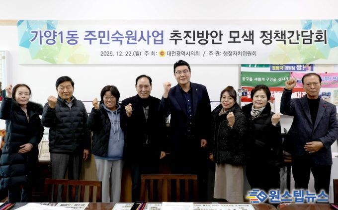 원스텝뉴스 이병희 기자 | 대전시의회 행정자치위원회는 정명국 의원(국민의힘, 동구 3) 주재로, 22일 행정자치위원장실에서 가양1동 주민숙원사업 추진방안 모색을 위한 정책간담회를 개최했다.