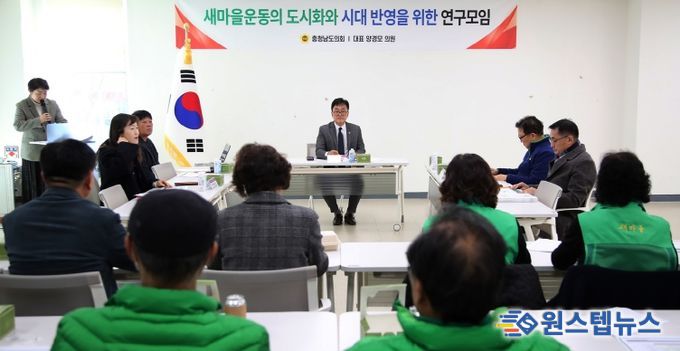 원스텝뉴스 이병희 기자 | 충남도의회는 ‘새마을운동의 도시화와 시대 반영을 위한 연구모임(대표 양경모)’이 22일 천안시 청소년복합커뮤니티센터에서 3차 회의를 열고 공식 활동을 마무리했다고 밝혔다.