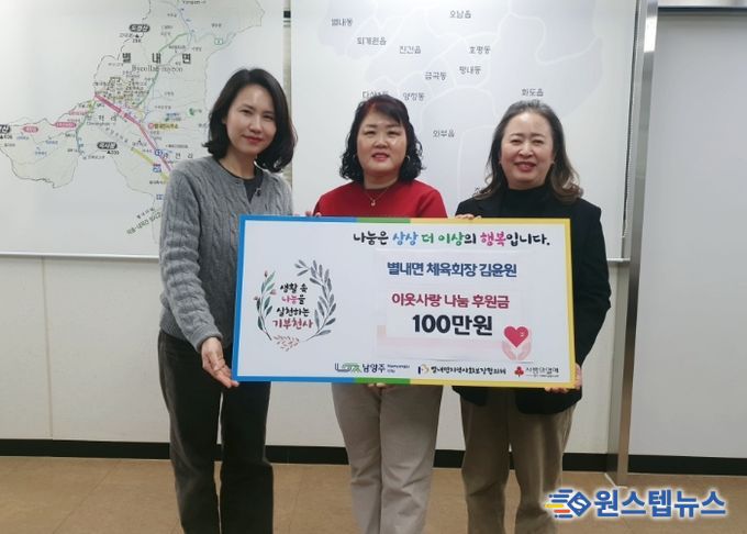 원스텝뉴스 이병희 기자 | 남양주시는 지난 19일 김윤원 별내면 체육회장이 지역 내 취약 가구 지원을 위해 이웃사랑 성금 100만 원을 별내면 지역사회보장협의체에 기탁했다고 22일 밝혔다.