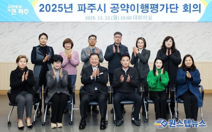 회의 결과, 파주시는 2025년 완료 공약 22건을 포함해, 민선 8기 공약 144개 중, 총 115건을 완료해 2025년 12월 기준 79.86%의 공약 이행률을 달성했다. 이는 같은 기간 민선 7기 전국 공약 이행률 71.72%(觙. 12. 기준)를 크게 웃도는 수치다.