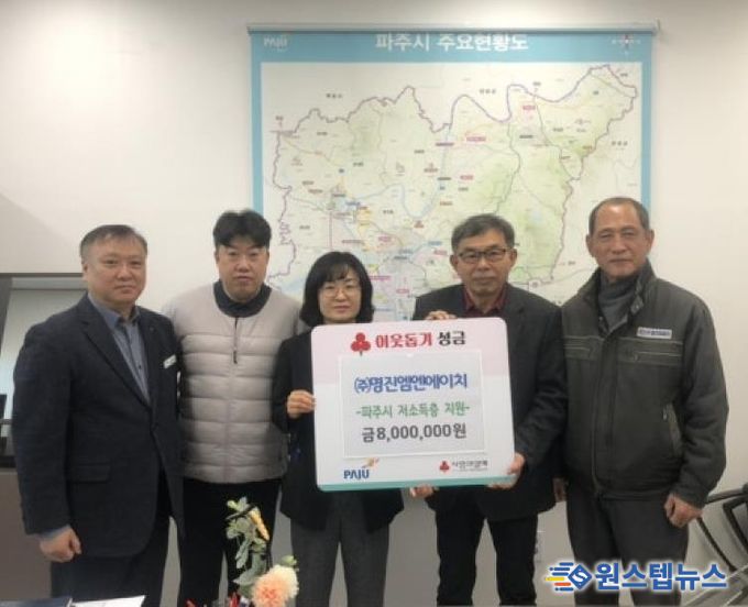 원스텝뉴스 이병희 기자 | 파주시는 지난 22일 관내 전문건설업체인 ㈜명진엠엔에이치로부터 불우이웃 돕기 성금 800만 원을 기탁 받았다고 밝혔다.