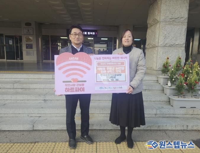 원스텝뉴스 이병희 기자 | 안산시는 지난 22일 한국승강기안전공단 안산지사로부터 사랑의 후원금 80만 원과 라면 6박스를 기탁받았다고 23일 밝혔다.