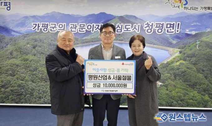 이에, 박성규 청평면장은 “큰 금액의 성금을 기탁해 주신 평원산업과 서울철물에 깊은 감사의 말씀을 드린다”며 “전해주신 성금은 도움이 꼭 필요한 이웃들에게 소중하게 전달하겠다”고 밝혔다.