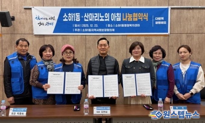 원스텝뉴스 이병희 기자 | 광명시 소하1동 행정복지센터는 23일 소하1동 지역사회보장협의체, 산마리노의 아침과 함께 나눔 문화 확산을 위한 업무협약(MOU)을 체결했다.