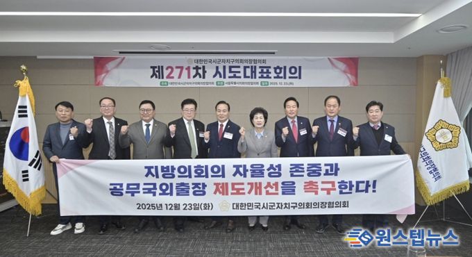 이날 시도대표회의에서는 '공무원 여비 규정 현실화 및 국외공무출장 위탁수수료 제도 개선 촉구'건의안 및 의장협의회의 2026년 당초예산안 및 2026년도 시·도전출금 사업계획(안) 승인의 건 등을 심의했다.