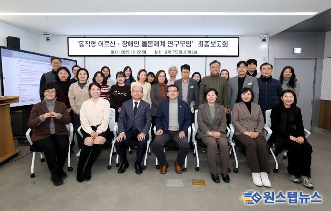이번 연구는 2026년 3월 시행 예정인 '의료·요양 등 지역 돌봄의 통합지원에 관한 법률'에 선제적으로 대응하기 위해 지난 6월부터 추진됐다. 이날 보고회에는 장순욱 대표의원을 비롯해 정재천 의장, 신민희·김효숙·이영주·노성철 의원과 덕성여자대학교 산학협력단(책임연구원 김진우 교수) 연구진이 참석해 동작구의 차별화된 돌봄 모델을 논의했다.