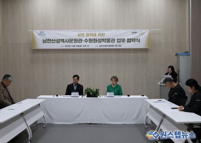원스텝뉴스 천규영 기자 | 남한산성역사문화관과 수원화성박물관은 2025년 12월 23일, 남한산성역사문화관에서 세계유산 성곽의 연구·보존·활용을 위한 업무협약(MOU)을 체결했다.