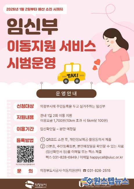 원스텝뉴스 이병희 기자 | 의정부시가 임신부의 이동 불편을 해소하고 안전한 외출을 지원하기 위해 2026년 1월 2일부터 ‘임신부 이동지원 서비스’를 시범운영한다.