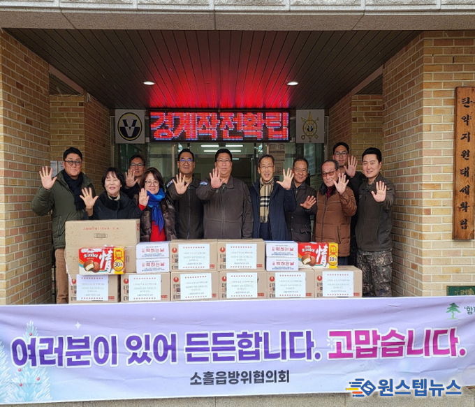 이번 위문품 전달은 소흘읍 방위협의회가 매년 지역의 군부대와 경찰, 소방 등 유관 기관에 감사와 격려의 뜻을 전하기 위해 마련한 행사로, 협의회 임원진과 위원 10여 명이 참여했다.