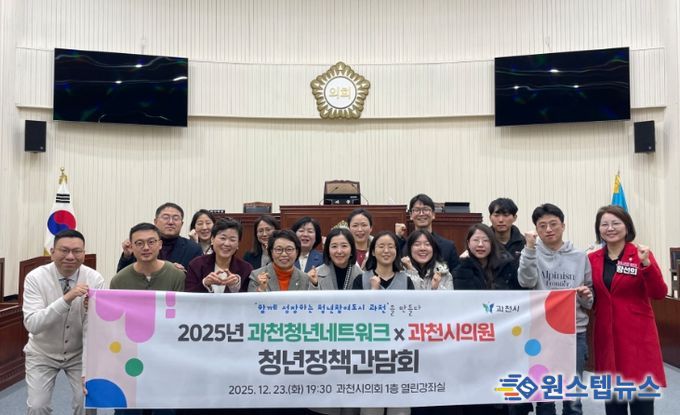 원스텝뉴스 이병희 기자 | 과천시는 지난 23일 과천시의회 열린강좌실에서 과천청년네트워크와 과천시의회 의원이 참석한 가운데 ‘함께 성장하는 청년참여도시 과천을 만들다, 2025년 과천시 청년정책 발전을 위한 청년정책간담회’를 개최했다고 밝혔다.