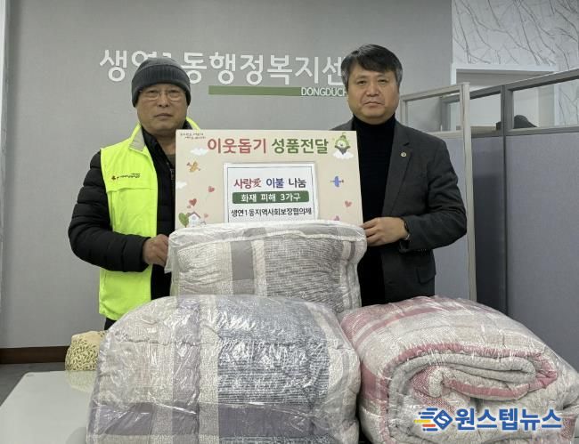 원스텝뉴스 이병희 기자 | 생연1동 지역사회보장협의체는 지난 22일 주택 화재로 피해를 입은 관내 가구를 방문해 이불을 전달했다고 밝혔다.