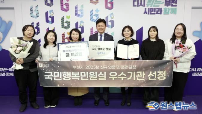 원스텝뉴스 이병희 기자 | 부천시는 행정안전부가 주관한 2025년도 ‘국민행복민원실’ 평가에서 신규 인증에 이어 우수기관으로 선정돼 장관표창을 수상했다고 24일 밝혔다.