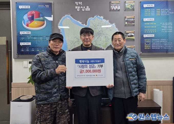 이근영 팽성읍장은 “지역을 위해 꾸준히 따뜻한 마음을 나눠주시는 분들이 있어 우리 읍은 더 큰 공동체 의식을 갖게 되는 것 같다”라며 “기부하신 성금은 도움이 필요한 주민들에게 잘 전달되도록 세심히 챙기겠다”라고 감사의 마음을 전했다.