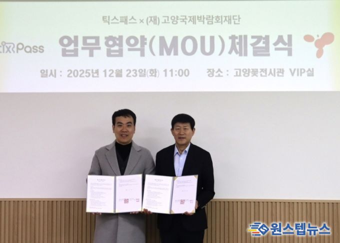 원스텝뉴스 천규영 기자 | (재)고양국제박람회재단은 지난 23일 고양꽃전시관에서 틱스패스 주식회사와 2026고양국제꽃박람회 모바일 입장권 도입을 위한 업무협약을 체결했다고 밝혔다.
