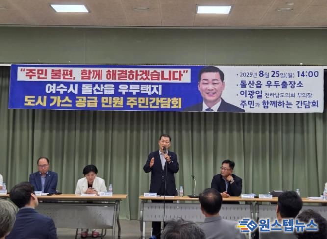 이 부의장은 지난 8월 돌산읍 우두리 주민들과 도시가스 공급 문제를 놓고 간담회를 연 사실을 언급하며, “여수시 전체 도시가스 보급률은 90%를 넘지만, 돌산 우두리 단독주택 지역의 보급률은 36%에 그쳤다”며 “같은 여수 안에서도 난방 여건의 격차가 분명히 존재한다”고 지적했다.