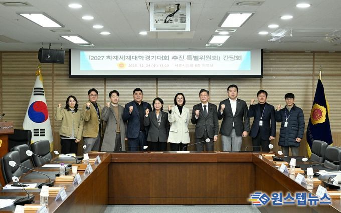 원스텝뉴스 이병희 기자 | 세종특별자치시의회 2027 하계세계대학경기대회 추진 특별위원회(위원장 김현미)는 24일 간담회를 개최하고, 선수촌 건립 및 유도장 조성 등 대회 준비 전반의 추진상황을 보고받은 후 주요 현안을 논의했다.