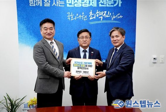 원스텝뉴스 이병희 기자 | 곽문근 원주시의회 부의장은 지난 24일, 최혁진 국회의원과 공동으로 최 의원 사무실에서 김성환 기후에너지 환경부 장관을 만나 원주시 당면과제인 물공급 문제의 해결을 요청했다.