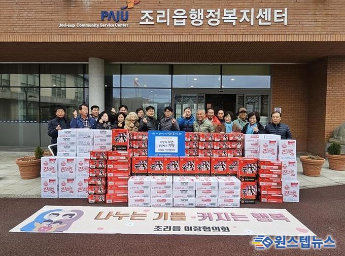 원스텝뉴스 이병희 기자 | 파주시 조리읍 이장협의회는 연말을 맞아 지역사회 나눔 문화 확산과 복지 사각지대 해소를 위해 지난 23일 조리읍에 라면 150상자를 기탁했다.