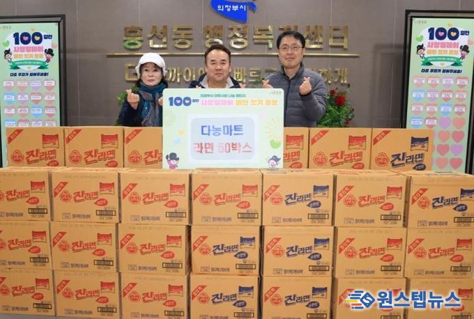 원스텝뉴스 이병희 기자 | 의정부시 흥선동행정복지센터는 12월 24일 다농마트가 ‘100일간 사랑릴레이 배턴 잇기’에 동참해 라면 50상자를 기탁했다고 밝혔다.