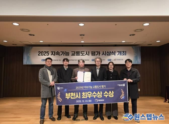 원스텝뉴스 이병희 기자 | 부천시는 국토교통부가 주최하고 한국교통연구원이 주관한 ‘2025년 지속가능 교통도시 평가’에서 인구 30만 명 이상 단일도시 부문 최우수상을 받았다고 26일 밝혔다.