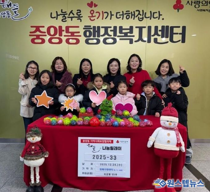 백경희 중앙동장은 “작은 손으로 큰 나눔을 실천해 준 함께자람센터 아이들과 지도교사분들께 감사드린다”며 “전해주신 소중한 마음이 이웃들에게 따뜻한 응원과 희망으로 전달될 수 있도록 하겠다”고 말했다.