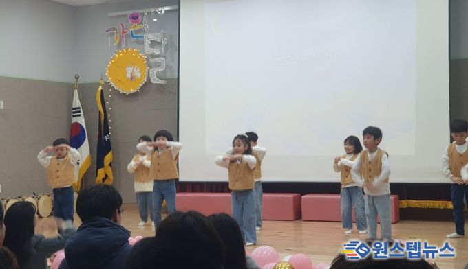 1부에서는 가온1·2반 유아들이 준비한 오카리나 연주와 우리나라 놀이를 주제로 한 놀이 뮤지컬 공연이 펼쳐졌다. 사물놀이 ‘농악’, 소고춤 ‘청개구리 타령’, 전래놀이를 접목한 무대를 통해 유아들은 놀이 속에서 배우고 성장한 경험을 자신감 있게 표현했다.