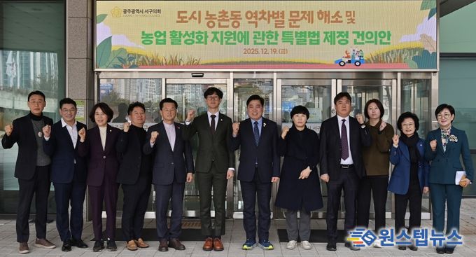 원스텝뉴스 이병희 기자 | 광주광역시 서구의회는 12월 19일 제336회 제2차 정례회 제3차 본회의에서 임성화 의원을 대표로'도시 농촌동 역차별 해소 및 농촌 활성화 지원에 관한 특별법 제정 건의안'을 발의했다.