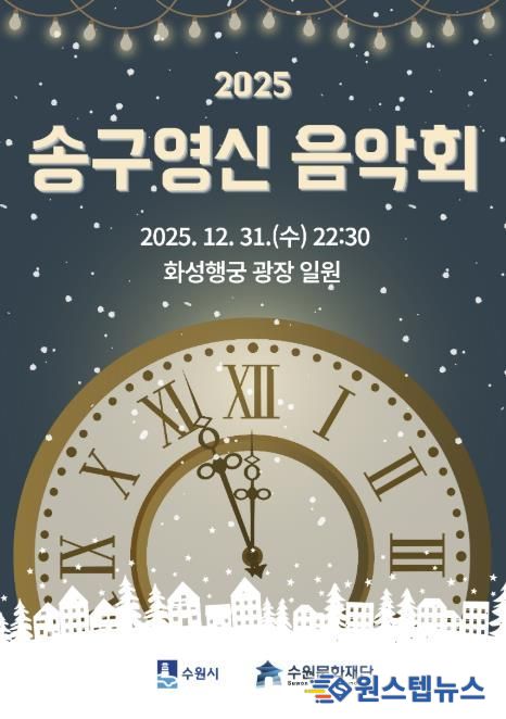 원스텝뉴스 천규영 기자 | 수원문화재단은 오는 31일 오후 10시 30분부터 수원 화성행궁 광장 일원에서 2025년을 마무리하고 2026년 신년을 맞이하는 ‘2025 송구영신 음악회’를 개최한다.