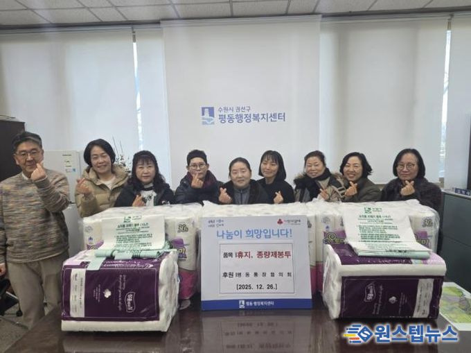 원스텝뉴스 이병희 기자 | 수원시 권선구 평동 통장협의회는 주민들과 함께 수거한 종이팩으로 교환받은 휴지와 종량제봉투를 전량 기부하며 따뜻한 나눔을 실천했다.