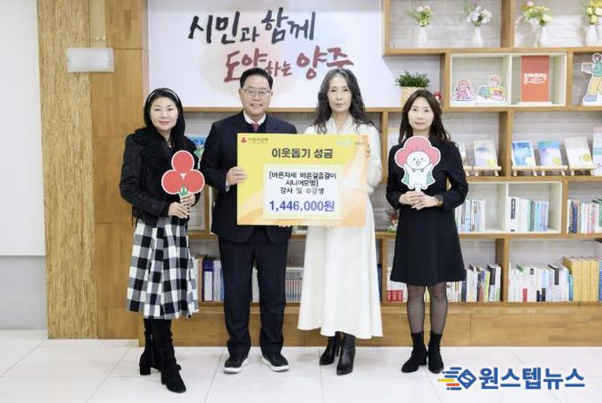 이날 기탁식에는 권은경 강사와 수강생이 참석해 나눔의 뜻을 전했으며, 기탁된 성금은 경기 사회복지공동모금회를 통해 양주시 취약계층 지원에 사용될 예정이다.