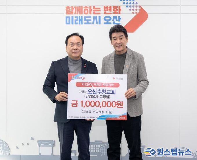 원스텝뉴스 이병희 기자 | 오산시는 지난 26일 오산수청교회가 희망2026나눔캠페인에 동참해 관내 취약계층 지원을 위한 성금 100만 원을 기탁했다고 밝혔다.